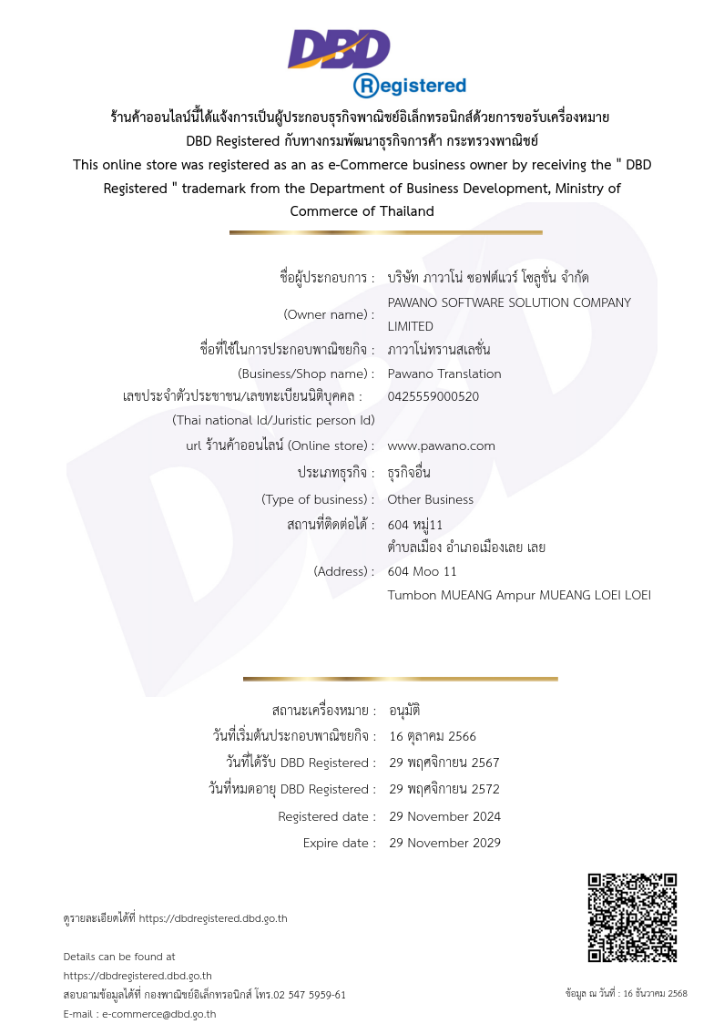 - นักแปลทุกคนผ่านการตรวจสอบประวัติจากทางบริษัทเป็นที่เรียบร้อย